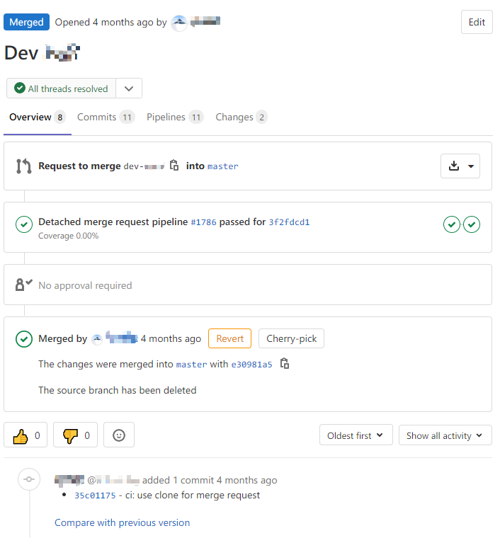 点击「参考 PR」可以跳转到 GitLab 中的 Merge Request 详情。